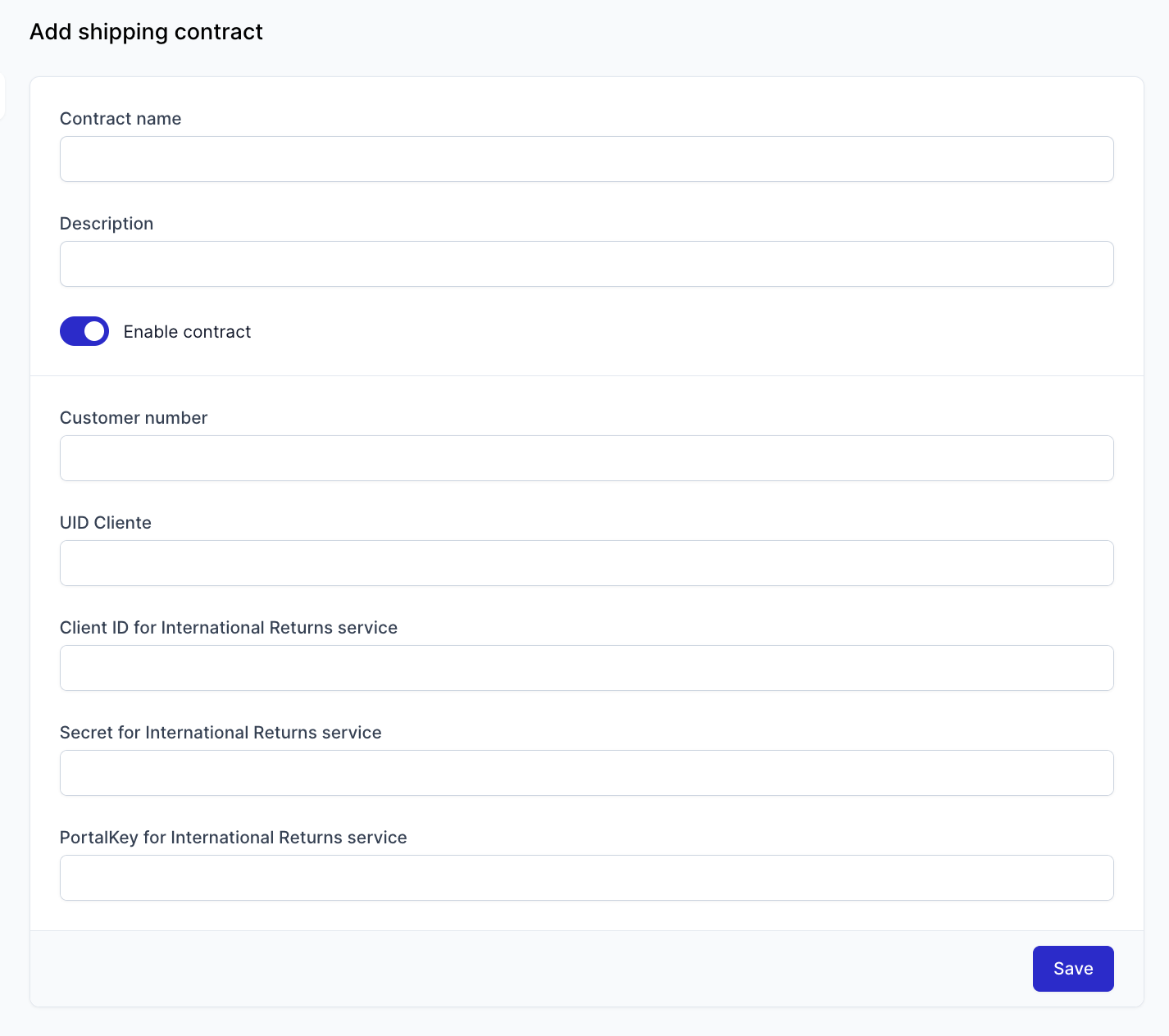 - Click the Add shipping contract button
