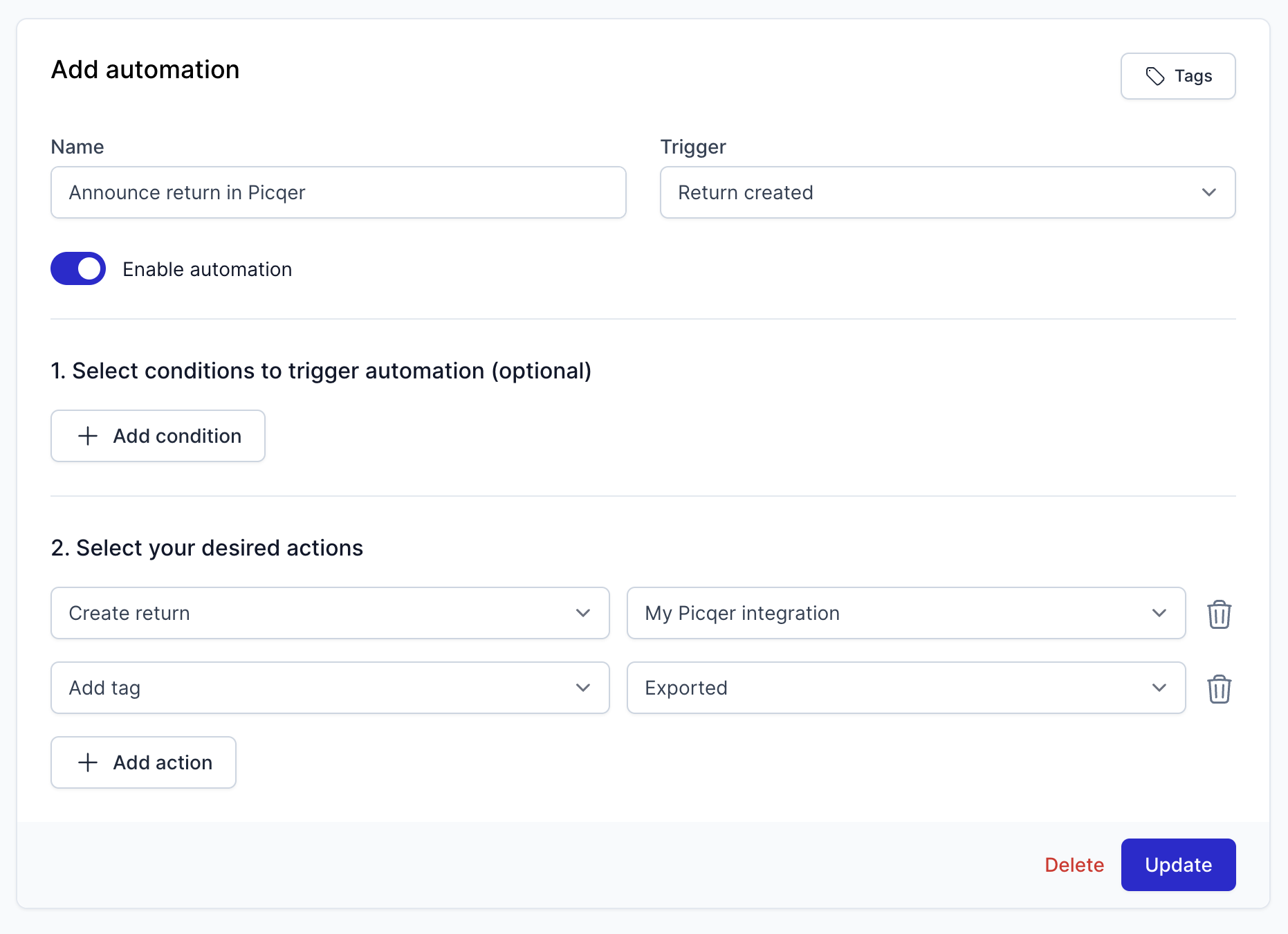 To automatically create a return in Picqer, you will need to add a new Automation.