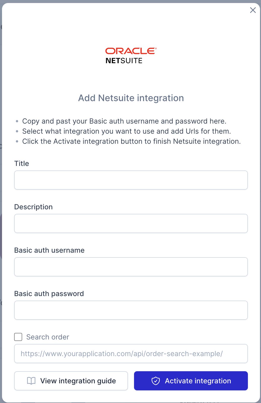 To create a new integration between Returnless and Oracle NetSuite, follow these steps: