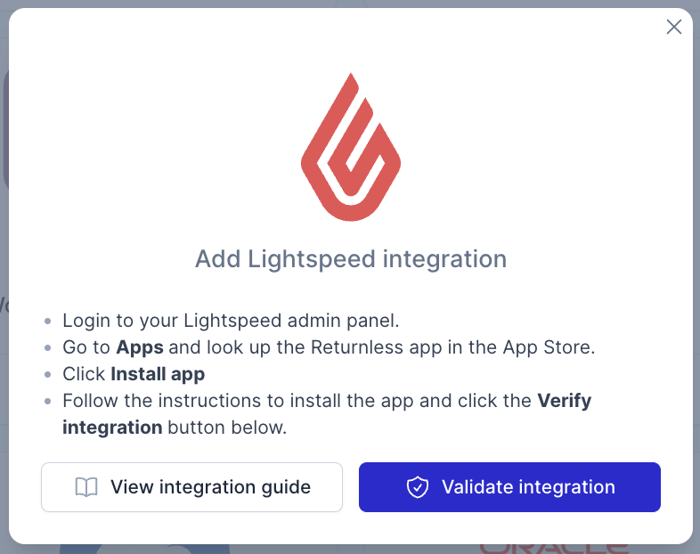 - Select the Lightspeed integration. A modal will open with further instructions to finish the installation.