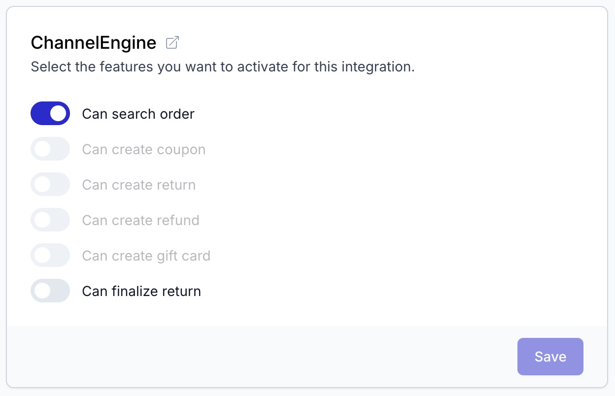 - Scroll down to the ChannelEngine integration and enable the option Can finalize return