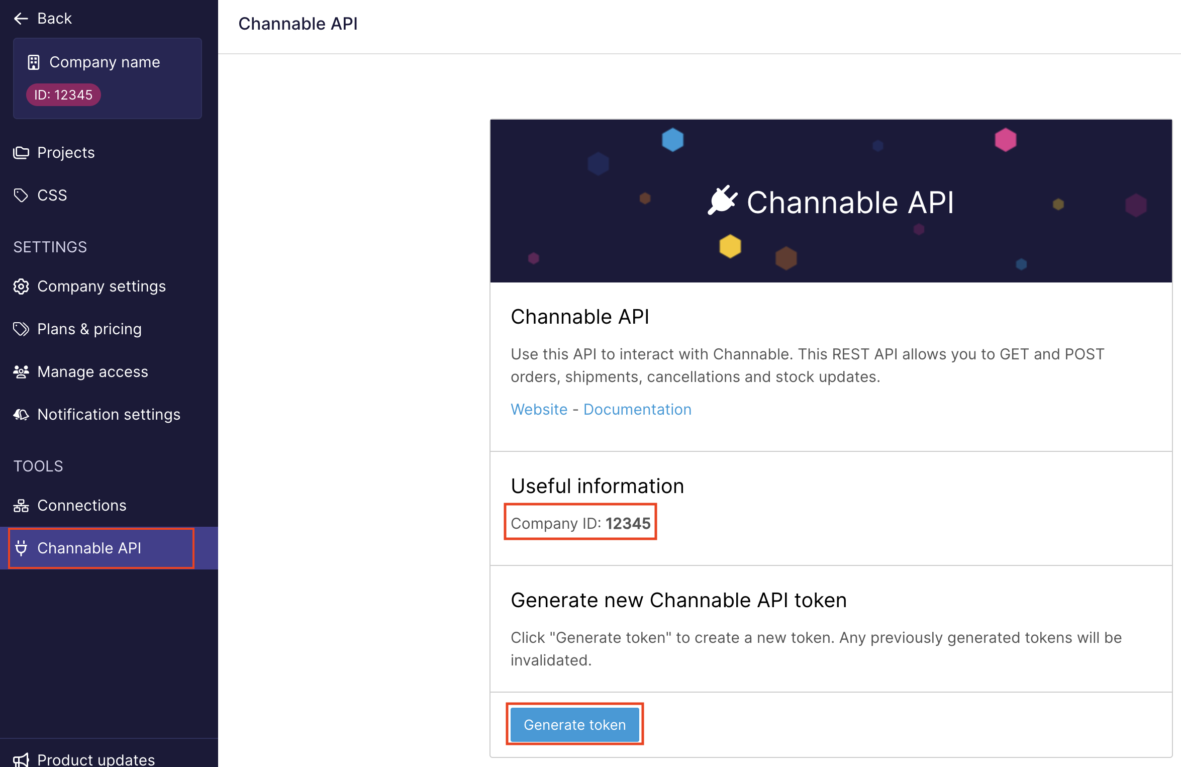 To make a connection to your Channable portal, a Channable API token is required. If you already have one, make sure to use it. If no token has been generated already, you can create a new one by following these steps: