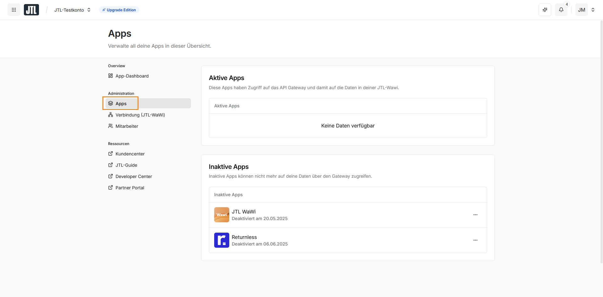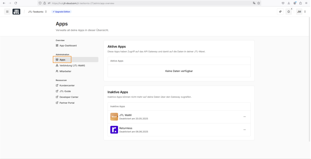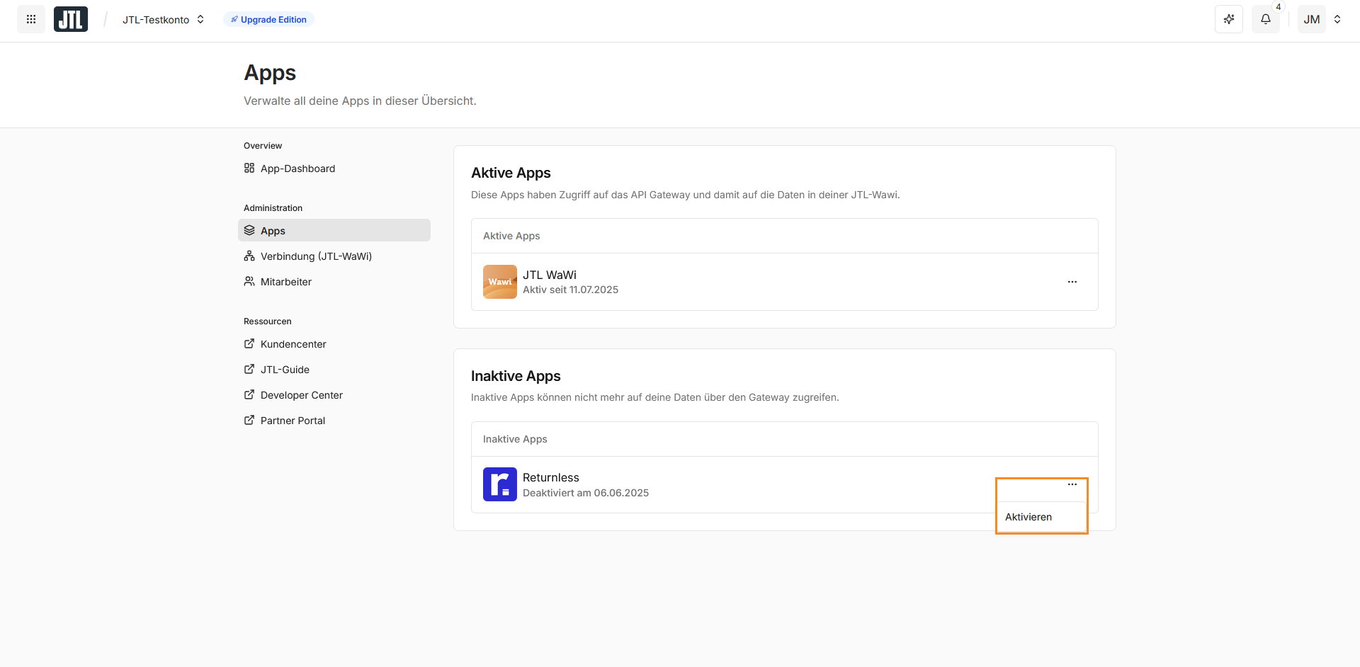 This guide provides step-by-step instructions for activating and launching the Returnless app within the JTL Cloud environment.