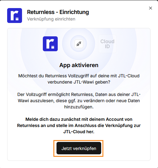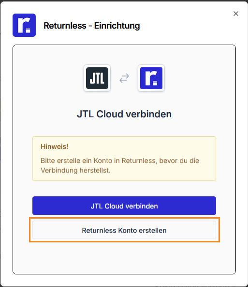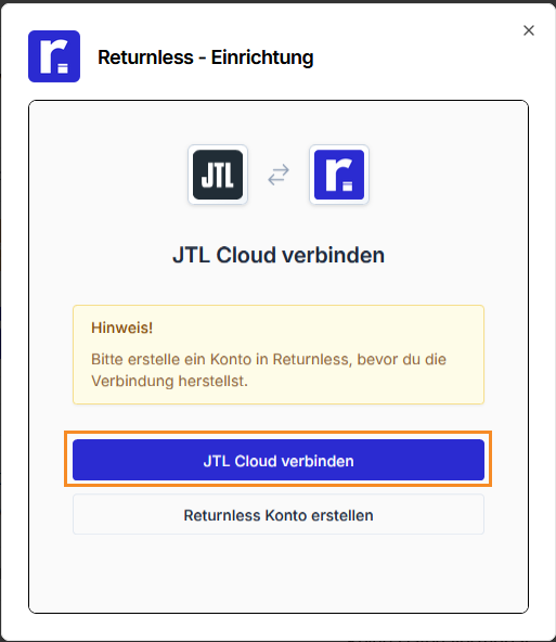 🚨 Important: To ensure a smooth connection between JTL Wawi and Returnless, you'll first need a JTL Cloud account. Check out our JTL Cloud setup guide for the configuration steps.