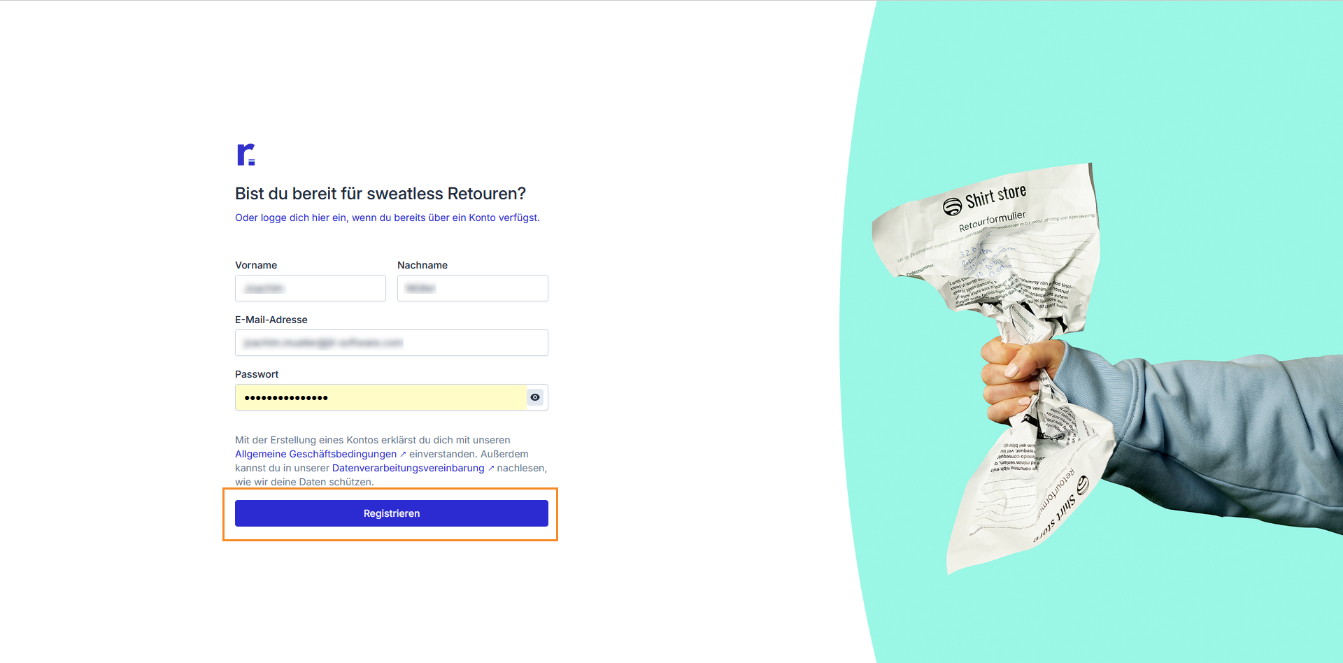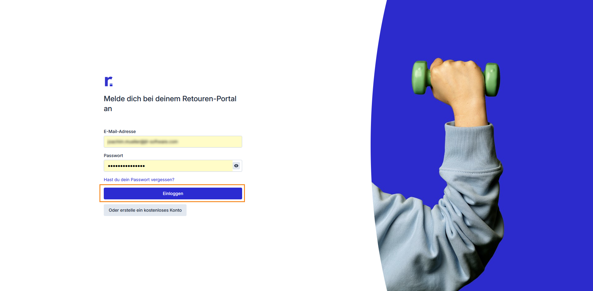 Enter your Returnless login credentials and click Log in.