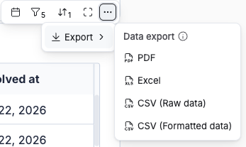- Transaction List: Scroll to the Return Orders table at the bottom to see individual resolutions. Click the three dots (⋮) > Export to download a CSV (Raw or Formatted) file. This is perfect for importing into your accounting software or CRM.