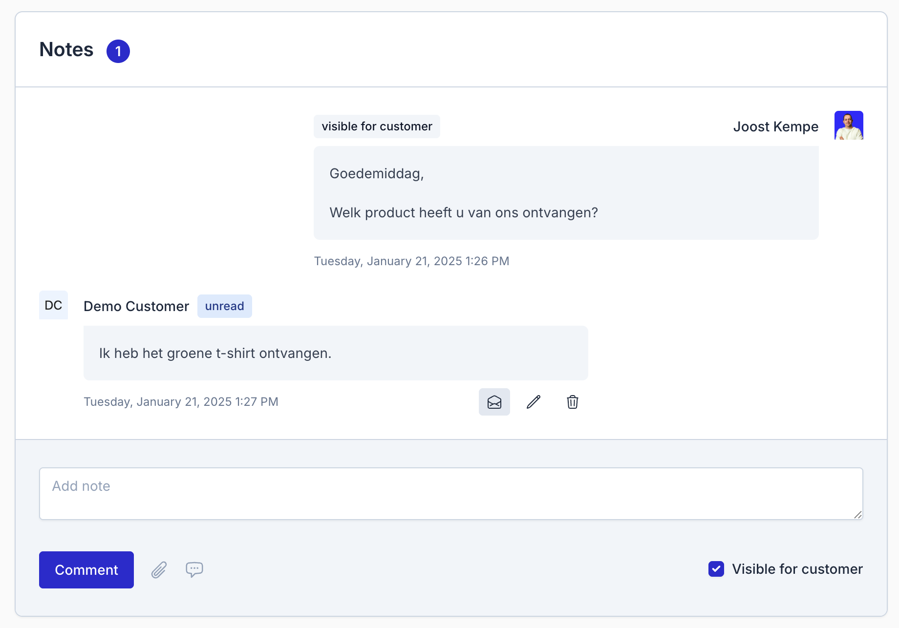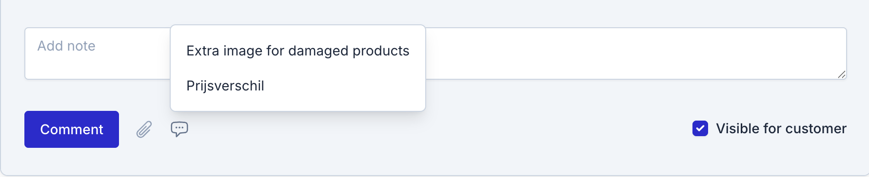 - Choose whether it should be visible to the customer or saved as an internal note.
