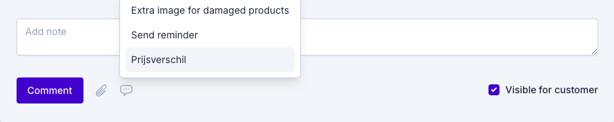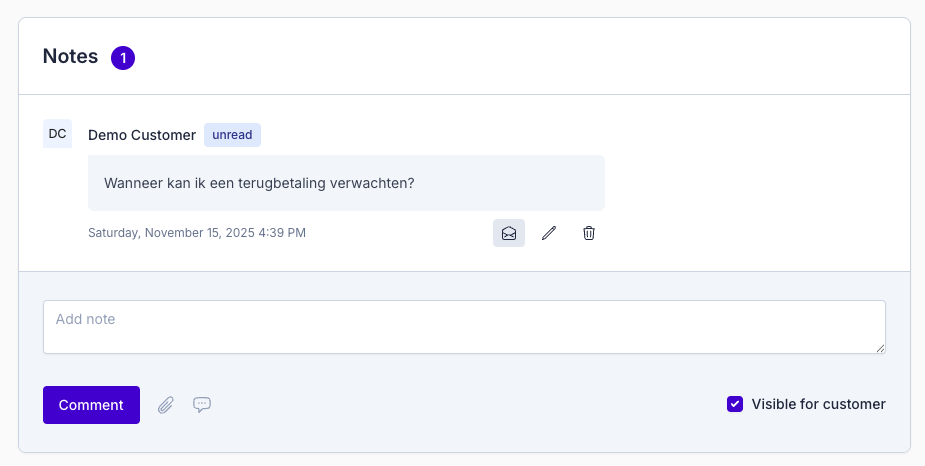 - Choose whether the note is visible to the customer or internal.