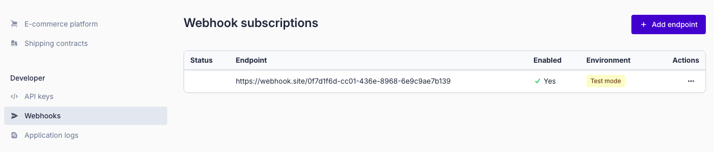 Click Add endpoint to configure your webhook.