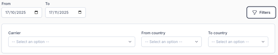 These filters allow you to narrow down the data to shipments that match specific conditions.