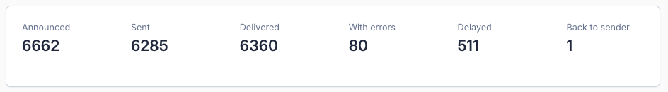 This section provides a quick overview of your shipments within the selected date range, including total counts per status.