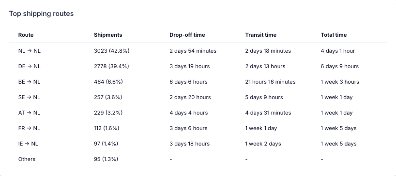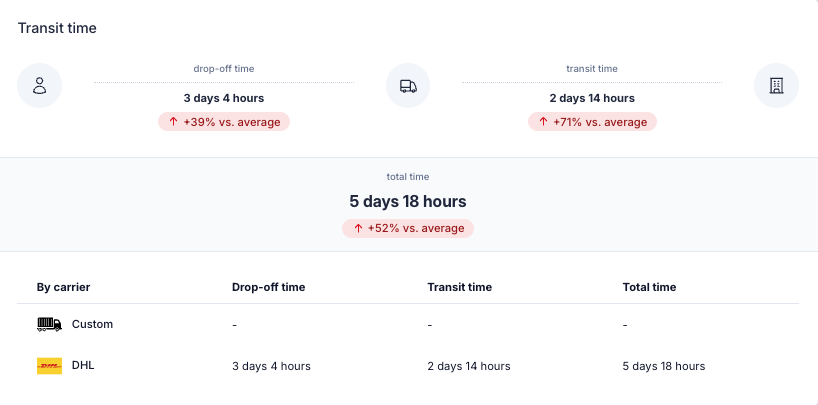 Below, transit times are further broken down per carrier, allowing you to evaluate performance differences between carriers.